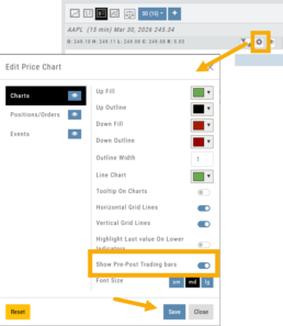 Then, toggle  “Show Pre-Post Trading bars” to the On position, as shown.