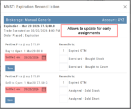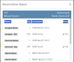 The Reconcile view will clear and all Journal Tabs will update to reflect the action resulting from each Expiration.